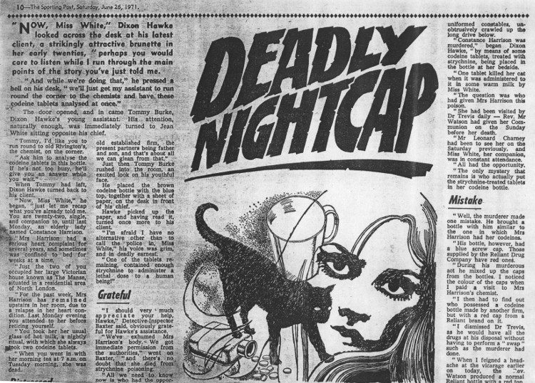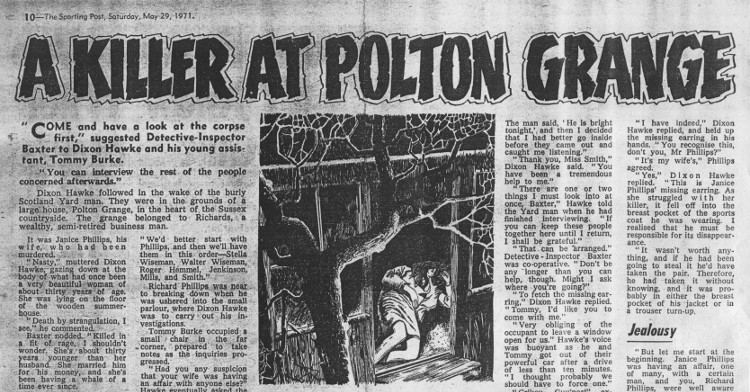Individual StoriesA Killer at Polton GrangeI don't know if A Killer at Polton Grange was the first Dixon Hawke story that Guy submitted for publication but, if it was, it's not surprising that it was accepted. It's a great example of how a mystery could be set up, investigated and solved within a single page of six column newspaper. It even combines routine detection with a uniquely linguistic solution to the crime that made me smile in admiration.